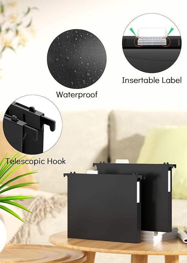 - 【Filing Folders Hanging】: Pnettco 12 Pack Black Hanging File Folders with 1-inch Expansion Capacity. These file cabinet folders are made of sturdy PP plastic that resists tearing and staining, offering longer lifespan than paper alternative