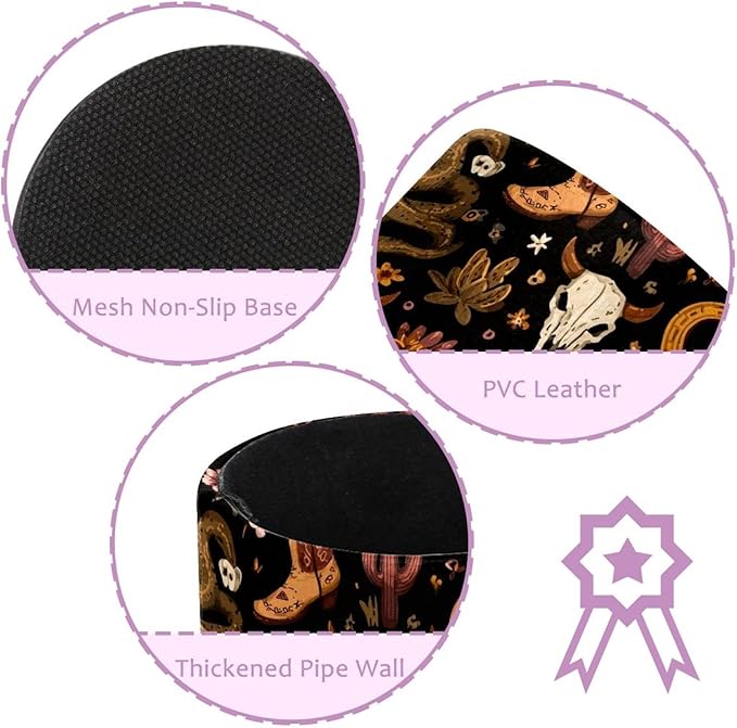 Western Boho Style Bull Skulls Pattern PVC Leather Circular Pencil Holder for Desk Organizer Stationery Holder for Office, School(3.9 x 3.1 Inches)