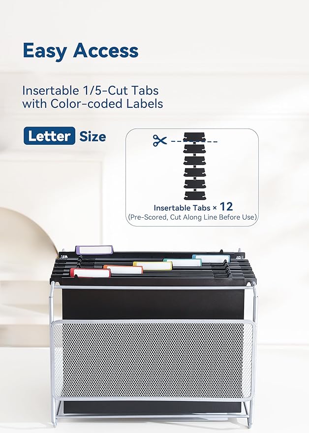 - Quick Access: Insertable 1/5-Cut Tabs with colorful labels. Easily customize, sort, and locate files. Create your own personalized filing system