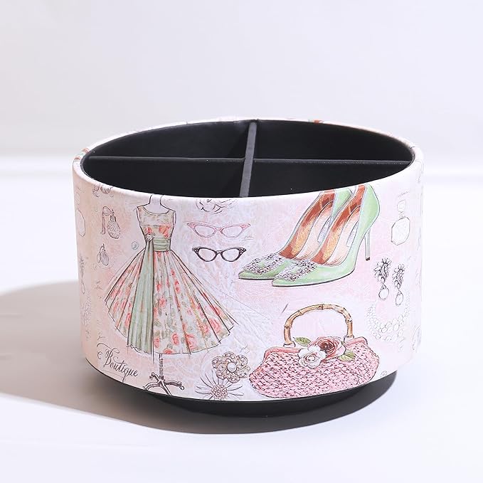 - ELEGANT DESIGN: Decorative vintage-inspired pattern featuring fashion illustrations of dresses, shoes, and accessories adds a stylish touch to any desk or vanity