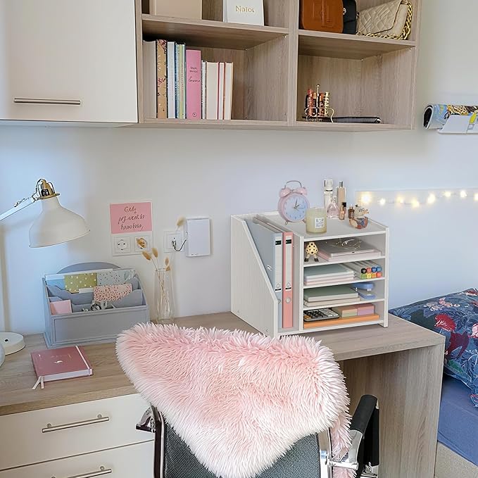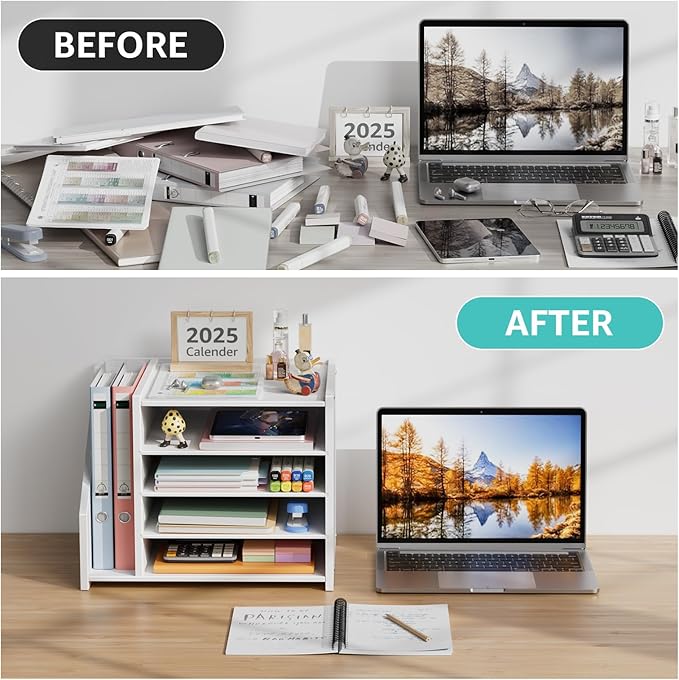 - Saves Valuable Space: Its compact wood desktop organizer design fits neatly on any office desk, holding file organizers, paper trays, and desk supplies without crowding your workspace