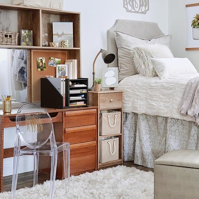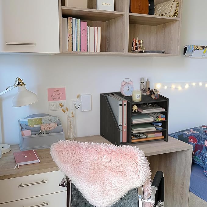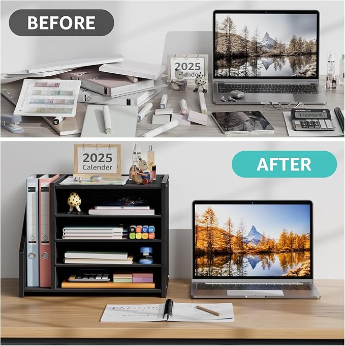 - Saves Valuable Space: Its compact wood desktop organizer design fits neatly on any office desk, holding file organizers, paper trays, and desk supplies without crowding your workspace