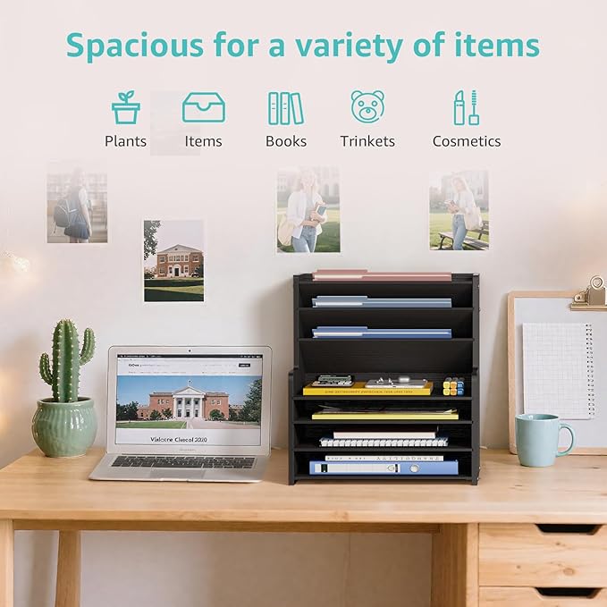 - 7-Tier Storage Organizer: This amazing desk organizer features 7 versatile tiers (both slanted & flat) to hold folders, mail, documents, notebooks, and office supplies, providing incredible storage and helping you achieve desk organization and a clutter-free workspace