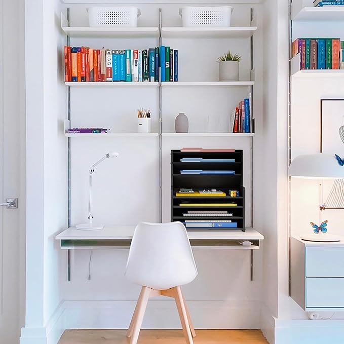 - Slanted & Flat Tier System: The combination of slanted tiers (perfect as a letter organizer or mail organizer) and flat tiers (ideal paper trays for notebooks & file folders) creates a versatile paper organizer and document organizer, ideal for any home office, classroom, or workplace