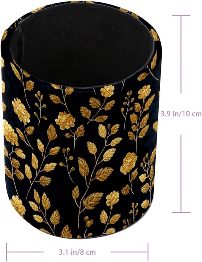 Leather Pen Holder for Desk Floral Golden Pencil Cup Desktop Organizer Makeup Brush Holders Office Supplies for Home, Kids & School