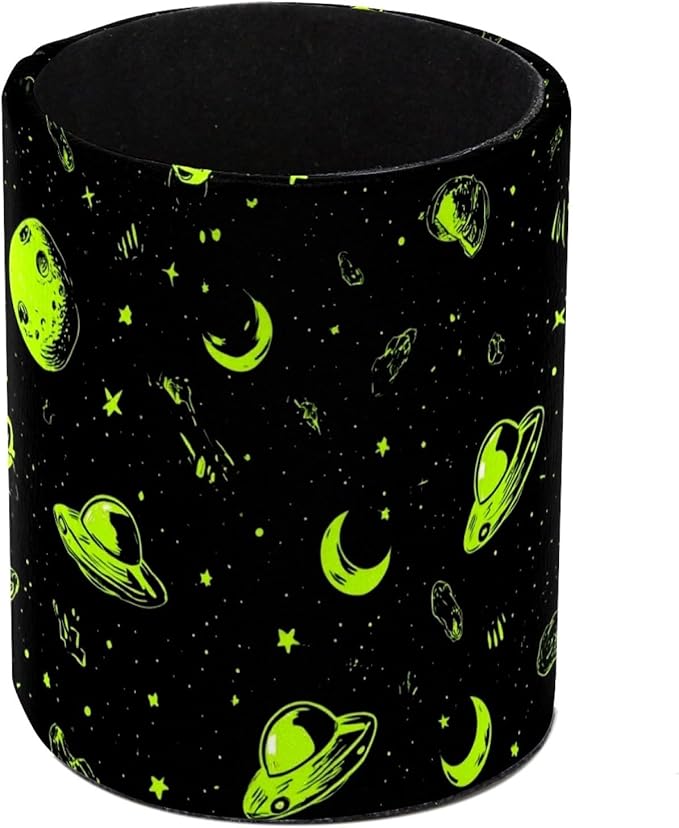 Leather Pen Holder for Desk Alien Moon Spaceship Pencil Cup Desktop Organizer Makeup Brush Holders Office Supplies for Home, Kids & School