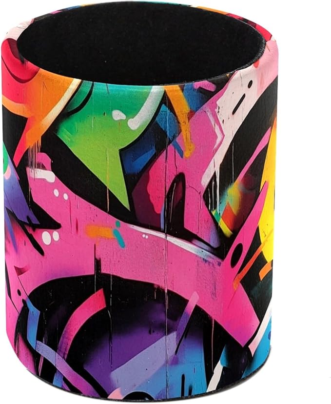 Leather Pen Holder for Desk Cartoon Graffiti Pencil Cup Desktop Organizer Makeup Brush Holders Office Supplies for Home, Kids & School