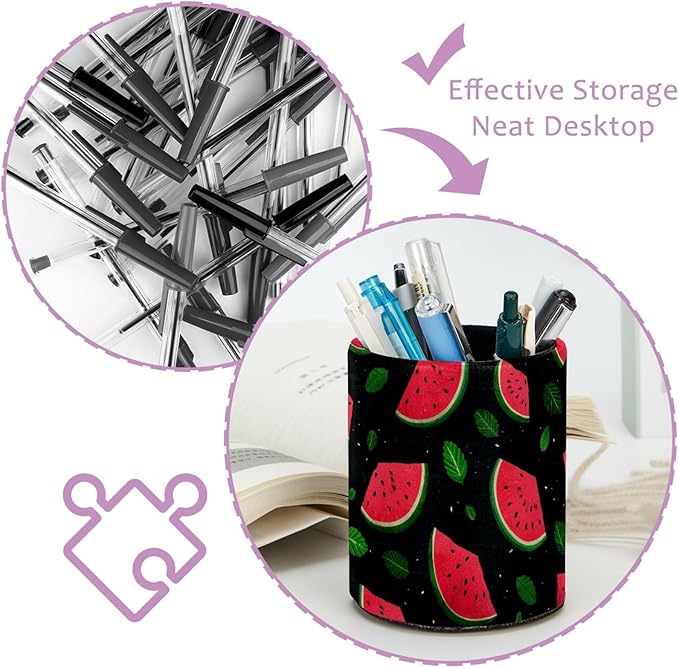 Leather Pen Holder for Desk Watermelon Print Pencil Cup Desktop Organizer Makeup Brush Holders Office Supplies for Home, Kids & School