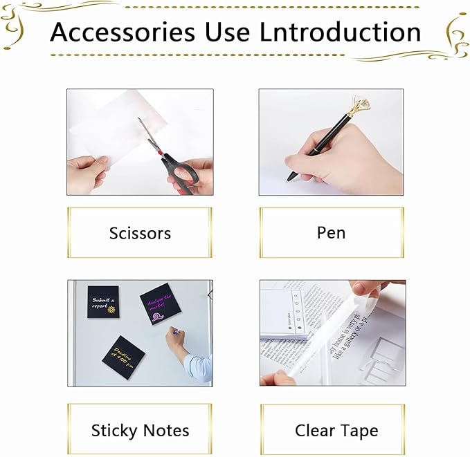 - 【Easy To Carry】:You can put these Black desk accessories in the drawer or desk at will, it won't take up too much space. The clips are equipped with a lattice storage box for easy organization use and storage.You can also put school supplies set in your handbag or schoolbag and take them anywhere.