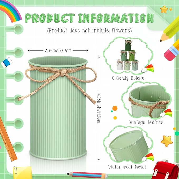 - Durable Construction: our pen holder cups are made of strong galvanized metal, these vases are designed to withstand regular use and resist wear and tear Waterproof coatings prevent rust and extend the life of each vase In addition, the leak-proof design can accommodate artificial flowers and hydroponic plants, suitable for a variety of flower arrangements and tabletop decor