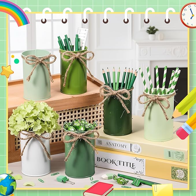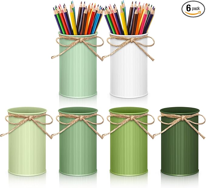- Pen Holder Set: You will receive 6 cute metal pen holders. Makes your pens, pencils, markers, paper clips, bull dog clips, drawing pins in a place and desk looks more cleanly. Not only a practical pen holder or flower pot great for students, teachers and kids, it's also great to be a decor for office and home. We offer a variety of colors to enhance the overall atmosphere of the event