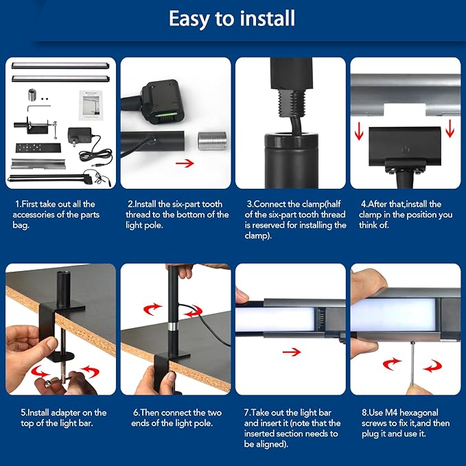 - 【 Wide and Super Bright Lighting 】: 33 inch office desk lamp with 5 color temperature adjustments (3000K-4000K-5000K 5500K-6500K) and dimming (10% -100%), convenient touch control, comfortable soft light 3000K to 6500K cool white, various lighting color temperature choices, there is always one color temperature suitable for use.