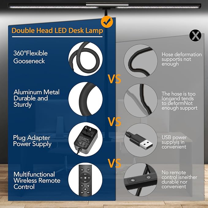 - 【Clip adjustable desk lamp】: This office desk lamp features a 360 ° gooseneck tube, a 180 ° foldable swing arm, and a 360 ° rotatable lamp head that can be adjusted to any angle. It is suitable for office lighting, work, reading, learning, handicrafts, painting, dormitories, and more, providing a larger coverage area for optimal visibility.