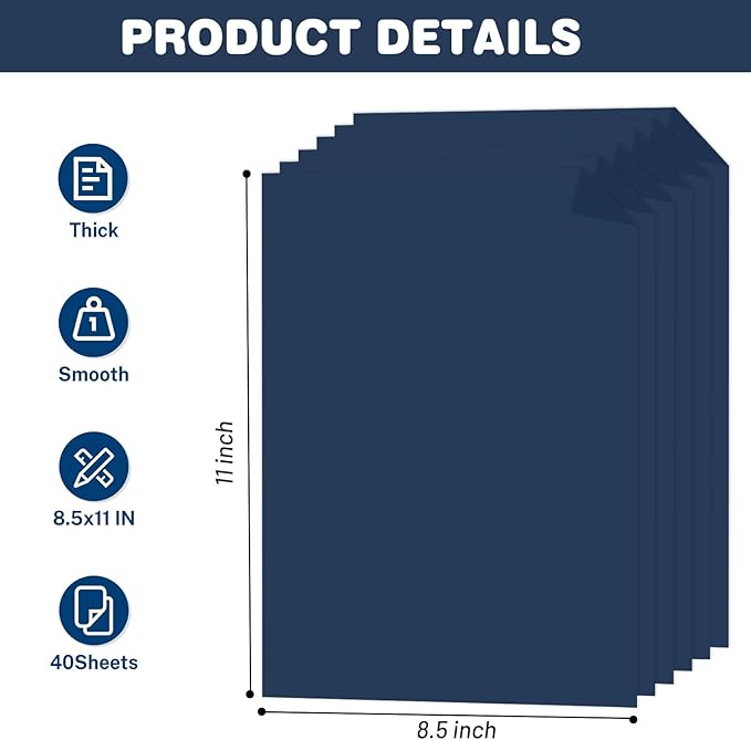 Cardstock 8.5 X 11, 40 Sheets Dark Blue Card Stock, 75lb/ 200gsm Copy Paper, Cardstock Printer Paper For Art, Drawing, Invitations, DIY Cards, Watercolor, Craft, Construction, School & Office Supplies