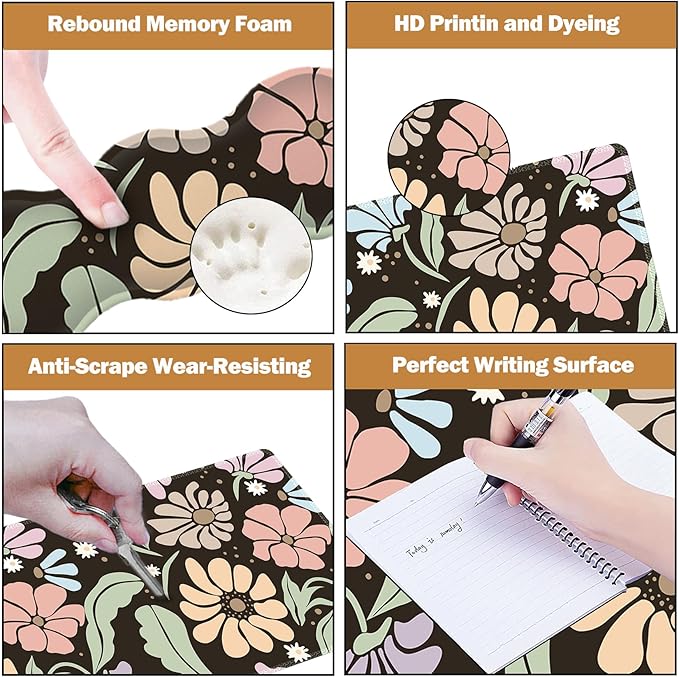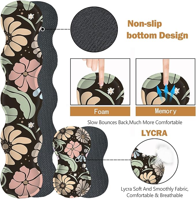ARTSO Keyboard Wrist Rest Large Mouse Pad Wrist Support,Black Floral 4in1 Keyboard Pad Desk Mat,Ergonomic Memory Foam Wrist Support Cushion for Home Office