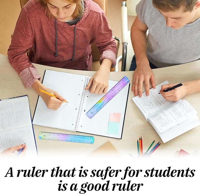 - 【Double Sided Scale】 Featuring inch and centimeter scales on both sides, our plastic ruler 12 inch offers clear and precise measurements. Whether measuring straight lines or curves, this straight edge ruler is practical and reliable.