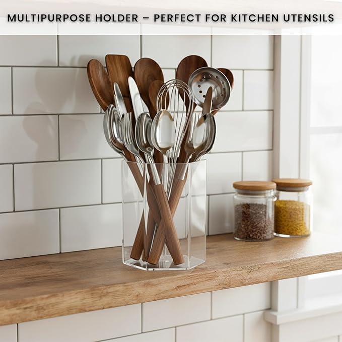 Acrylic Pen Holder for Desk | Hexagonal Cute Pen Holder | Multipurpose Clear Acrylic Makeup Organizers, Clear Toothbrush Holder Cups & Pencil Cups for Classroom, Office Desk Accessories