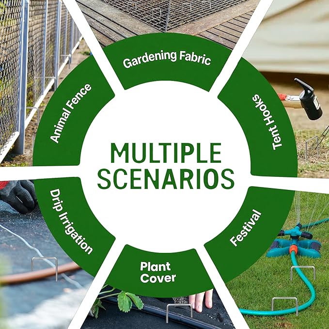 - 【HEAVY-DUTY GALVANIZED STEEL】– Rust-resistant, commercial-grade steel stakes withstand strong winds, UV exposure, and repeated use. Ideal for securing bird netting, holiday decor, row covers, and more
