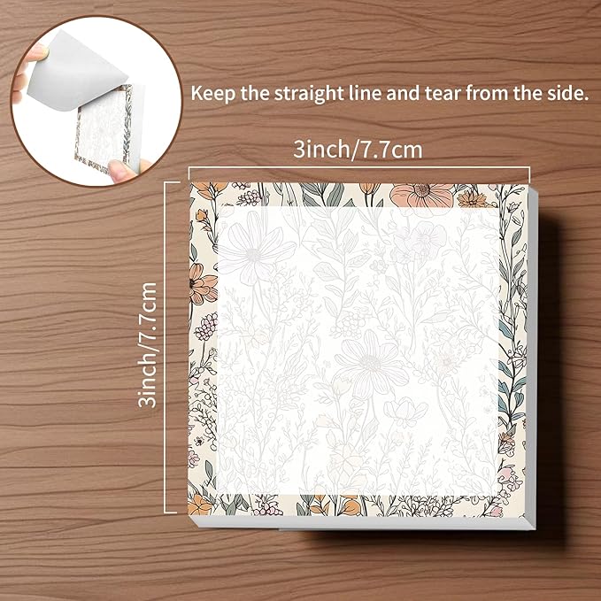 Sticky Notes, 2 Pads, 3x3 inches, Cute Colorful Fun Self-Stick Note Pads, Easy Post, Strong Adhesive Notepad Neutral Wildflowers