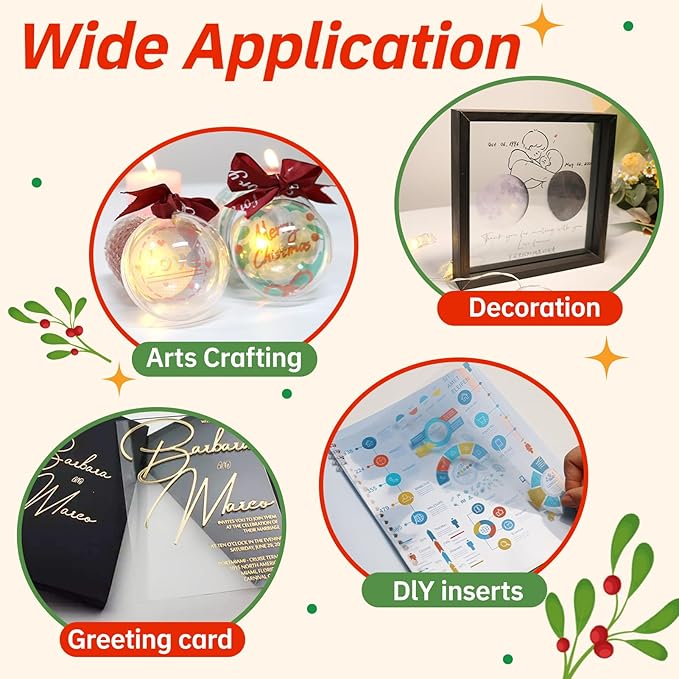 - Wide Application: Use for laser color Printing and Copies, Screen Printing, Overhead Projector, DIY Crafts, Printing Plate, DIY Ornament, Fillable Ball Ornament Printing , Decoration, Insert, Clothing plate making Proofing, Presentation, Teaching tool, Positive PCB Image, Resin Coaster, Sign for Display, Paper Crafting Project, Foil Images etc.