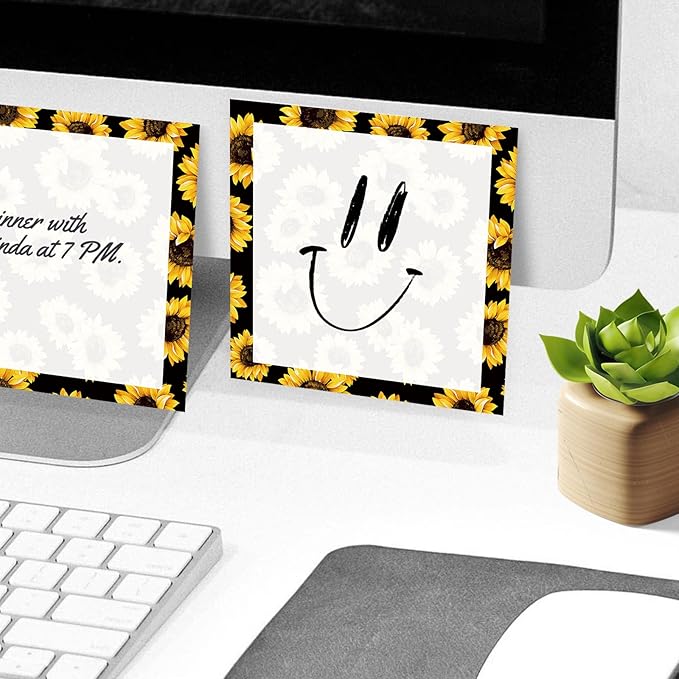 Sticky Notes, 2 Pads, 3x3 inches, Cute Colorful Fun Self-Stick Note Pads, Easy Post, Strong Adhesive Notepad Yellow Black Sunflowers