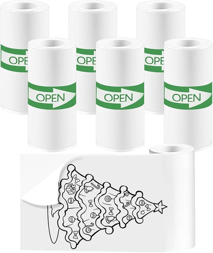 6 Rolls Mini Thermal Printer Sticker Paper, 57x25mm, High-Contrast Sticker Paper for Mini Pocket Printer, BPA-Free