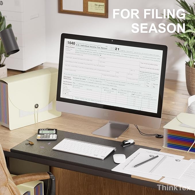 - HOMEOFFICE FILE ORGANIZER:ThinkTex Portable accordion file organizer, with both the top and bottom expandable. It has 12 dividers and 13 pockets, as well as removable colorful monthly labels. Suitable for letter/A4 size documents, it can keep your tax files, monthly bills and receipts neatly organized.