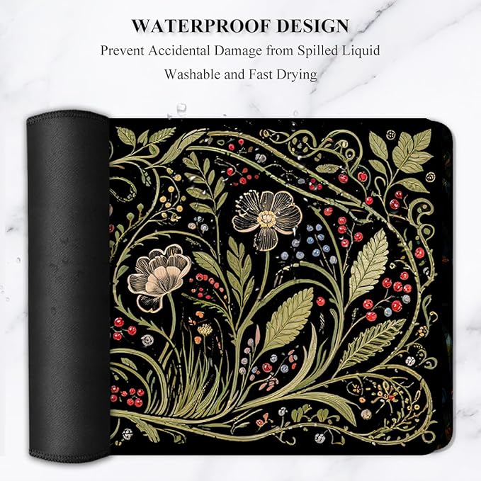 Auhoahsil Desk Mat, Ultra Large Mouse Pad, XXL Gaming Mousepad, Pretty Desk Pad, Big Extended Full Size Desktop Desk Matt for Keyboard, Laptop & Computer, 35.5 x 15.7 in, European Vintage Flowers