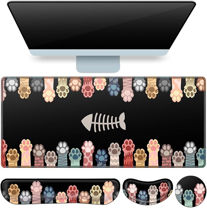 Desk Mat, Large Gaming Mouse Pad with Wrist Rest, 4in1 XXL Mousepad+Keyboard Wrist Rest+Mouse Pad Wrist Support+Cup Coaster Set Ergonomic Computer Desk Arm Wrist for Decor Home Office Table Women