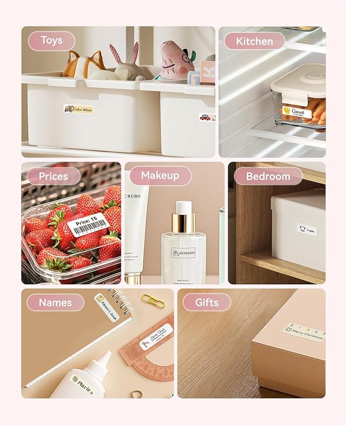 - 【Ideal Gifts】The NIIMBOT D110 Sticker Printer Machine is used widely in organizing home supplies - storage, food date marking, classifying cosmetics items, jar stickers; School name labels, study note and office files classification, cable identification, personal item identification, name tags; Small business - price tags, jewelry tags and more.