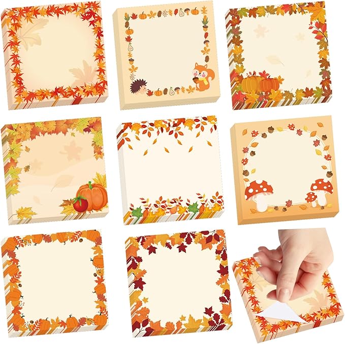 - Easy To Stick And Tear: Autumn theme self stick note pads are made of quality paper and adhesive, smooth surface for easy writing, re-stickable and won't leave any marks, thanksgiving self stick notes measure about 3.1 x 3.1 inches, compact and portable, can be easily put into your carry-on bag