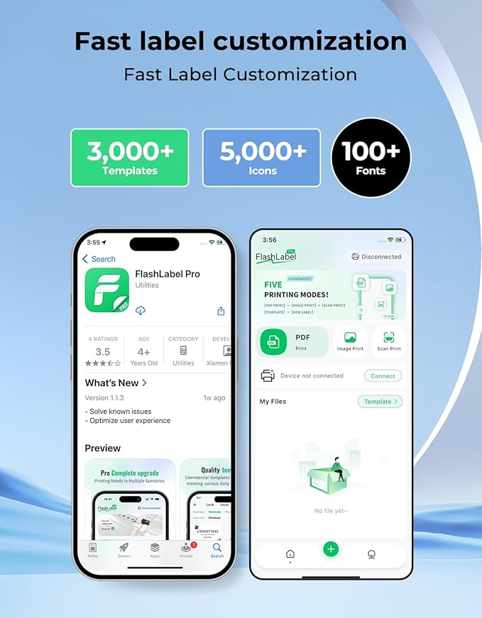 - Versatile DIY Labeling Options: Equipped with the user-friendly FlashLabel Pro app, this shipping label printer provides access to over 3,000 pre-designed templates, 5,000+ icons, and 100+ fonts. Print quickly and easily with no complicated setup