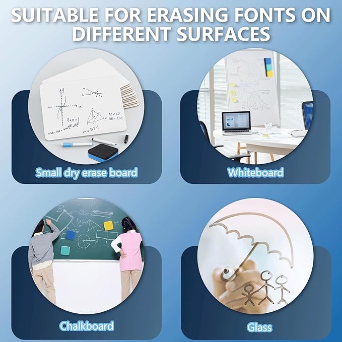 - Versatile Applications: Ideal for a variety of settings including homes, offices, schools, dormitories, game rooms, and play centers. These dry erase board erasers are a great aid for managers, teachers, students, and kids, perfect for presentations, education, drawing, and score counting.