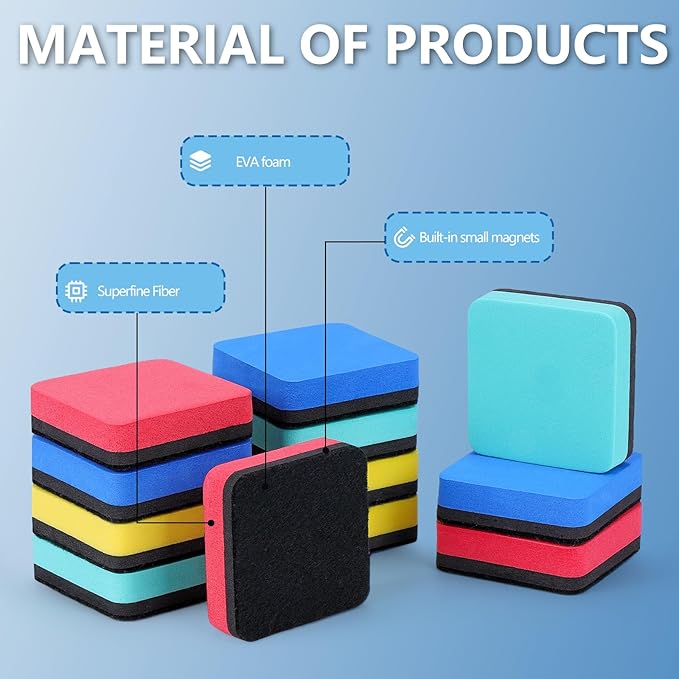 - Convenient Magnetic Design: Each dry erase eraser comes with a built-in magnet for easy attachment to any magnetic-receptive whiteboard, ensuring they are always within reach when you need them.