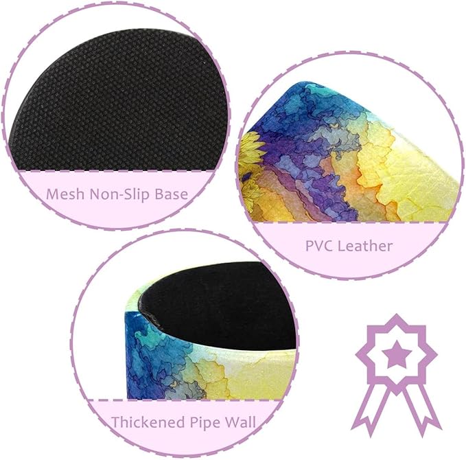 1 Pack Watercolor Art Sunflower Circular Pen & Pencil Holder - Durable PU Leather Pencil Cup, Desk Accessories Organizer for Office Desk School Home