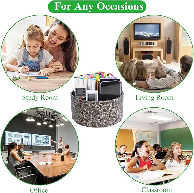 - ✎360° Revolving Design: The swivel is on ball bearings, so it rotates smoothly and will rotate for many years.You can freely rotate the pen holder steadily left and right,unique spinning base design allows easy access to items from any directions, a decoration and office organizer for women/men home and office desktop.