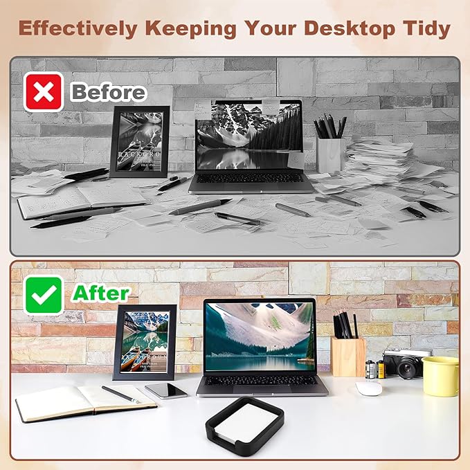 - 【High-Quality Craftsmanship】Our black note paper tray is made of high-quality wood, polished and deburred for a smooth surface. The white blank notepad uses 80gsm offset paper for smooth writing, and the top is brushed with glue for easy tearing. This note paper tray can safely store important documents, writing tools, and other office essentials, effectively keeping your desktop tidy.