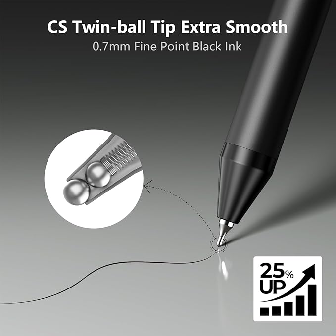 - 【0.7MM Smooth Writing】Featuring an advanced CS Twin-ball pen tip design reduces friction by 25% over standard nibs and delivers fine strokes, preventing hand fatigue and providing a more consistent and smooth writing feel. It is ideal for quick notes and long sketches. Note: Remove the sealing wax before use.