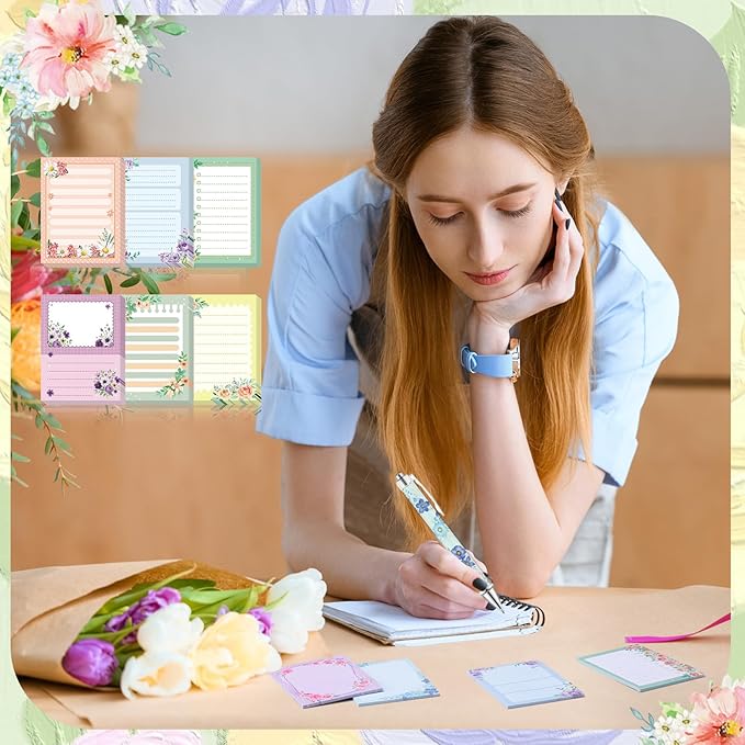 - Reliable Adhesive & Vibrant Colors: Crafted from durable sticky paper with bright, fade-resistant floral prints. Each sticky note measures 3 x 4 inches, and the pens are 5.3 inches long, compact for easy portability