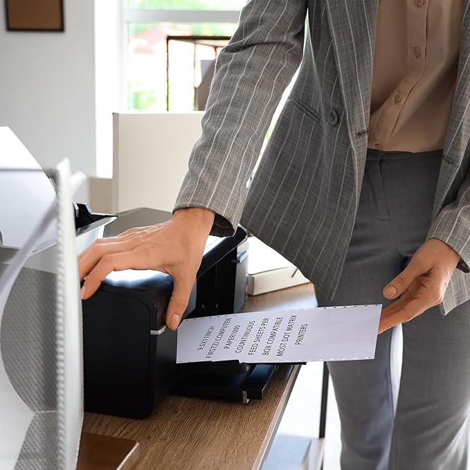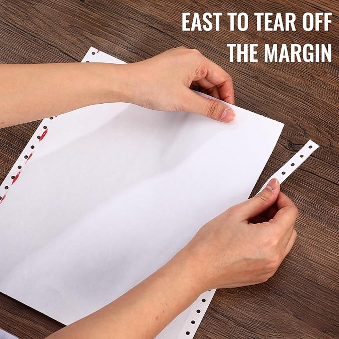 - Continuous Feed Computer Paper: engineered for dot matrix printers, our computer printer paper maintains excellent ink retention with zero damage; The wood pulp construction ensures smooth feeding through most impact printers; Left and right margins with tractor feed holes for uninterrupted printing for lengthy documents and report