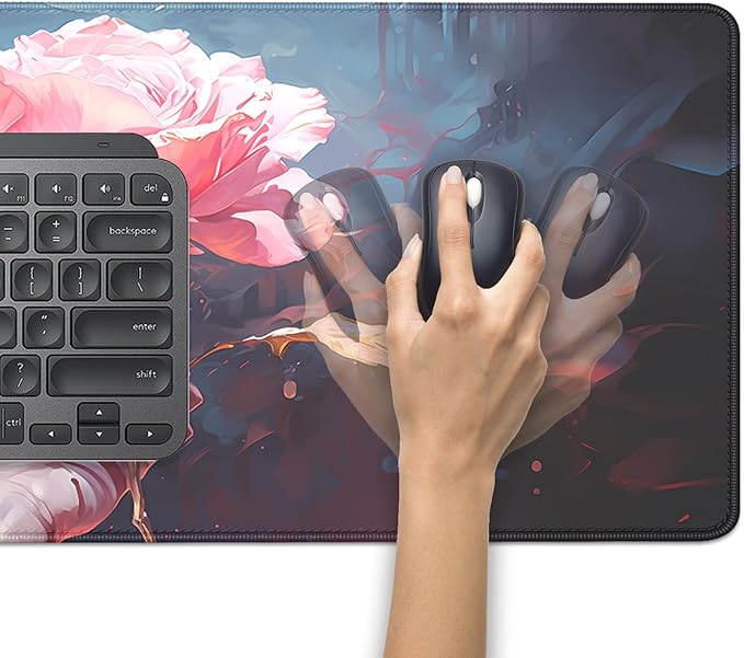 Artistic Flowers Mouse Pad,XL Floral Mousepad Desk Pad with Stitched Edges,Non-Slip Waterproof Rubber Base Mouse Mat Desk Mat for Office Computer Keyboard Laptop Home(27.5x11.8 in)