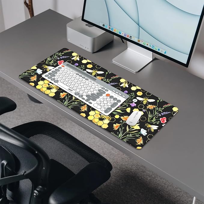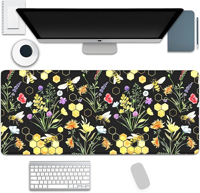 Bees and Honeycombs Mouse Pad,XL Large Wildflowers Mousepad Desk Pad with Stitched Edges,Non-Slip Waterproof Rubber Base Mouse Mat Desk Mat for Office Computer Keyboard Laptop Home(27.5x11.8 in)