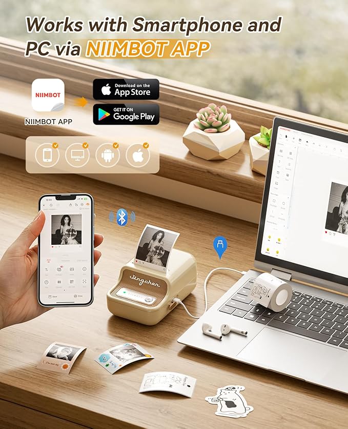 - 【Two Ways for Connecting】The B21 Pro label maker is compatible with Android and IOS via bluetooth, USB cable connection for PC,need to download the NIIMBOT application on computer(Not compatible with Pad, not recommended for use with Pad.)