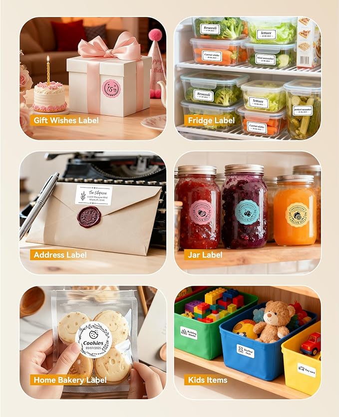 - 【Widely Use】Made of high quality material with retro style, this b21 pro label maker can be widely used in home organization, retail, wedding, party, clothing, bakery, jewellery, small business, school, home office. And this label maker also is a nice choice as present for Birthday, Anniversary, Housewarming, Christmas, Halloween, Thanksgiving, Mother's Day.