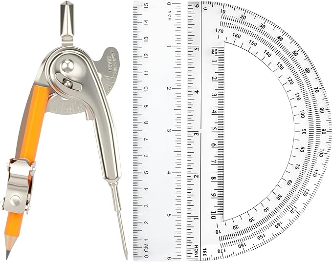 - Comprehensive Math Tool Set: this math compass combination set includes 1 pieces metal math compasses, 1 pieces pencils (which have been installed on a compass for your direct use), 1 pieces geometric protractors and 1 pieces rulers, providing ample quantities for everyday use or sharing with family and friends