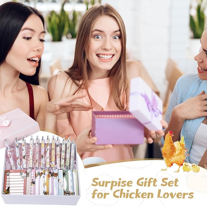 24 Pcs Chicken Sticky Notes with Pens Themed Gifts Self Adhesive Notepad Cute Memo Notes Pads Black Ink Ballpoint Pen for Chicken Lover Gifts Office School Students Teacher Supplies