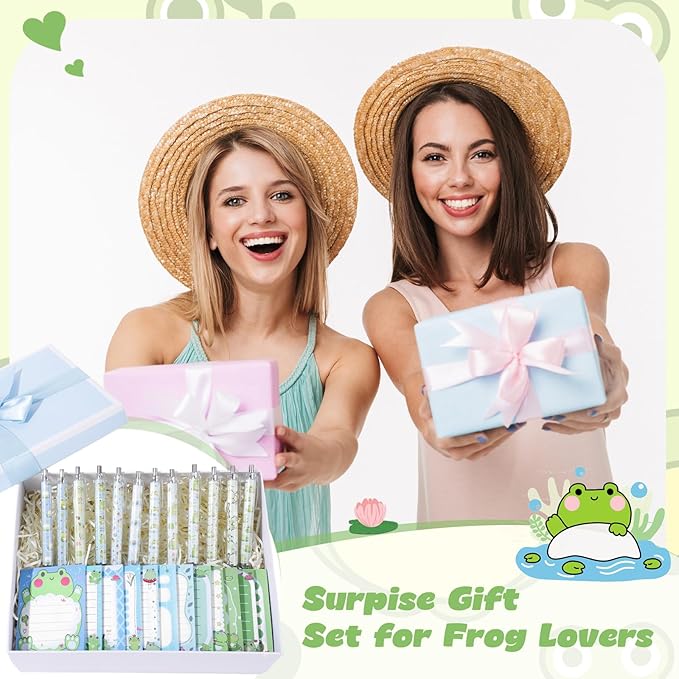 24 Pcs Frog Sticky Notes with Pens Themed Gifts Self Adhesive Notepad Cute Memo Notes Pads Black Ink Ballpoint Pen for Frog Lover Gifts Office School Students Teacher Supplies