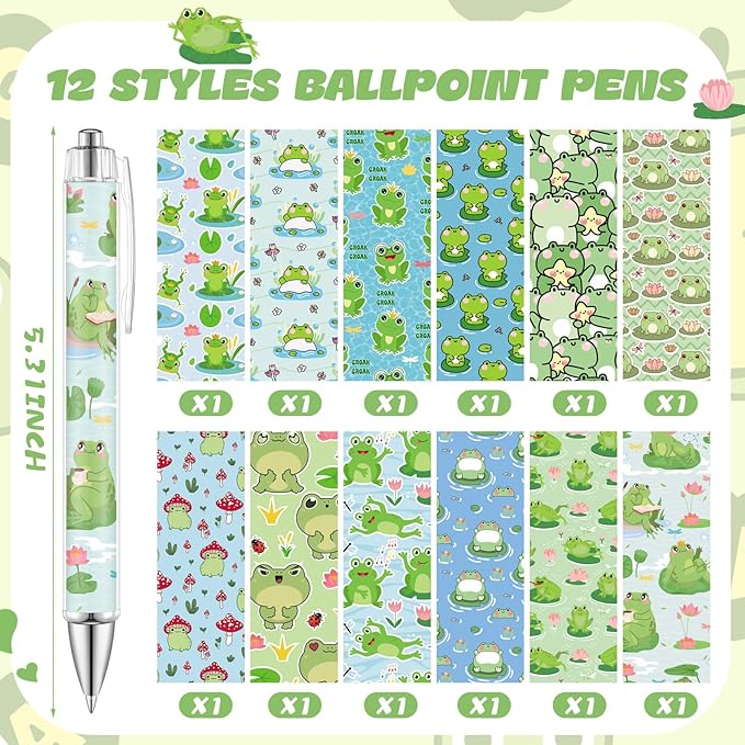 - Versatile Frog-Themed Sticky Notes Set: Includes 12 pieces of adorable frog sticky notes in different styles, each with 30 sheets, plus 12 matching ballpoint pens. Perfect for jotting down notes, reminders, and to-do lists at home, school, or the office