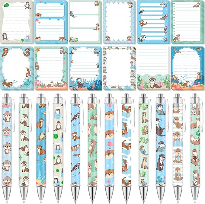 - Versatile Otter-Themed Sticky Notes Set: Includes 12 pieces of adorable otter sticky notes in different styles, each with 30 sheets, plus 12 matching ballpoint pens. Great for jotting down notes, reminders, and to-do lists at home, school, or the office