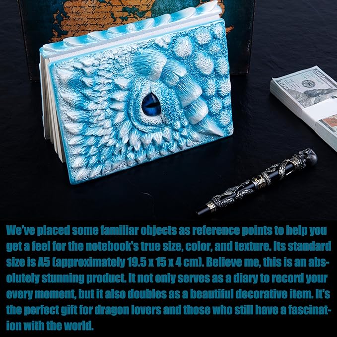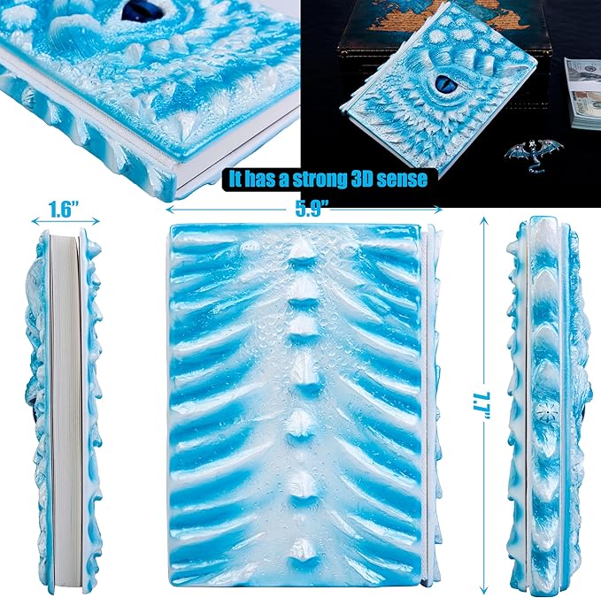 3D Dragon Eye Embossed Journal,Resin Engraving Notebook,Dnd notebook for Dragon Lovers ,Blank Paper,Hardcover Travel Notepad for Writing,Sketchbook,Collection,Gift,Decoration A4 and A5 Size (A5-Ice dragon-Lined)